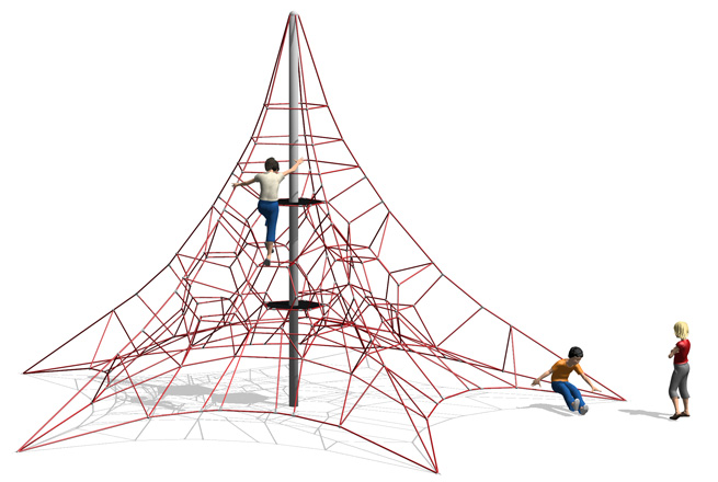 Yo propongo una «Pirámide Tridimensional» donde los pequeños se desenvuelve escalando, atravesando cuerdas, etc.